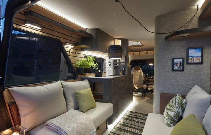 在内饰上,该车大量采用仿皮聚氨酯材料Haptex®,具有丰富的色彩和质感,触感柔软舒适,同时容易清理,且不含有机溶剂,保证了房车的舒适度。加上基于Elastocoat®C Spray Gel材料的温度调节效果,车内的座椅和床垫即使在炎热的气候里也能保持清新凉爽。