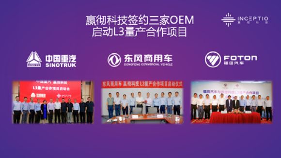 嬴彻科技与三家主机厂签约量产合作项目
