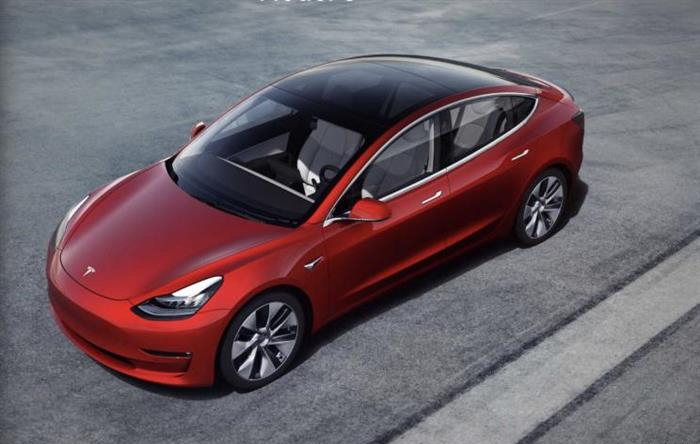 配图为Model 3 Performance高性能全轮驱动版的动力运动轮圈造型