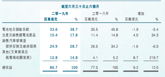 锂电池产品业务营收1540万港元,占营收比重的17.8%,同比增长34.3%,主要系叉车制造商的需求增加所致。叉车及风电场相关业务营收1280万港元,占营收比重的14.8%,同比增长219.7%。