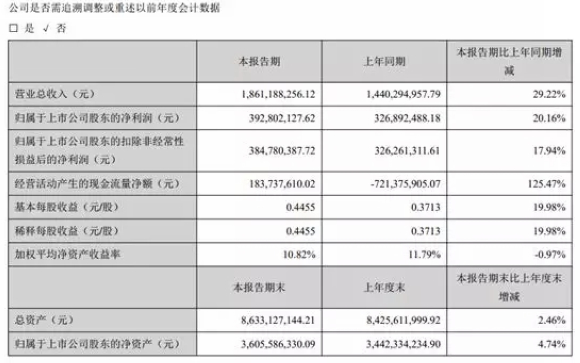 先导智能披露半年报。先导智能2019年上半年实现营业收入1,861,188,256.12元,同比增长29.22%;实现归属于上市公司股东的净利润392,802,127.62元,同比增长20.16%;基本每股收益0.4455元/股。