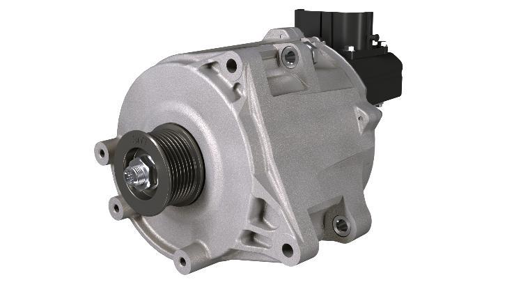在混合动力汽车(HEV)应用中,HVH 146(内置式永磁电机)最适合放置在传统交流发电机的P0位置进行皮带驱动集成。HVH 146通过高压皮带系统安装于发动机前部,该高压皮带系统允许发电机在高功率下运行,且转速可高达16,500 rpm。除了作为起/停装置外,当汽车刹车或滑行时,HVH 146还可对电池组进行再生充电。此外,其还可提供65 Nm的峰值扭矩和95%的峰值效率,从而为高行驶里程提供清洁辅助动力。HVH 146电机重量仅为14千克(30.9磅),却能够提供35 kW峰值功率和65 N•m(47.9磅-英尺)峰值扭矩,其功率重量比达到了传统交流发电机的两倍之多。