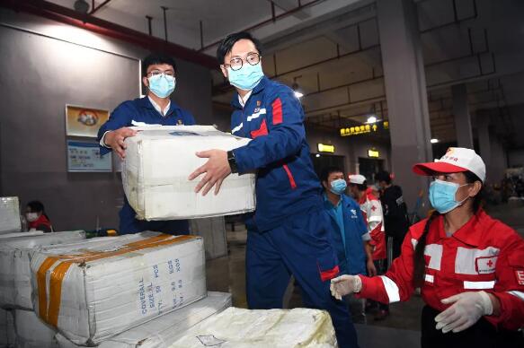 玉柴相关人员连夜在机场接收搬运物资