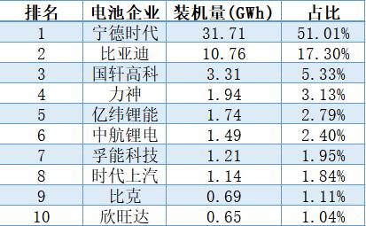 △2019中国动力电池装机排行
