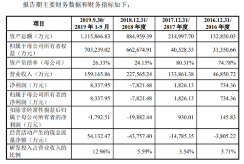 2016年至2019年1-9月,孚能科技的营业收入分别为4.68亿元、13.39亿元、22.76亿元和15.92亿元;扣非后归母净利润分别为145.83万元、930.01万元、-1.99亿元和-1792.51万元。截至2019年9月,公司的资产总额为111.59亿元,归属于母公司所有者权益为70.32亿元。孚能科技表示,由于规模效应尚不明显,受到补贴政策影响,公司在报告期内的净利润规模较小或处于亏损状态。