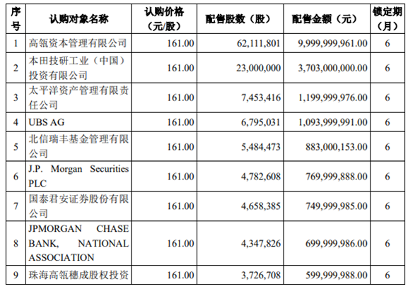 7月17日晚间,宁德时代发布公告,公布非公开发行股票发行结果。根据公告,宁德时代本次发行股份数量1.22亿股,发行价格为每股161元,扣除发行费用后,实际募集资金净额约196.2亿元。其中,在7月10日宣布与宁德时代签署战略合作协议的本田认购了37亿元,大头则被高瓴资本拿下,认购金额达100亿元。