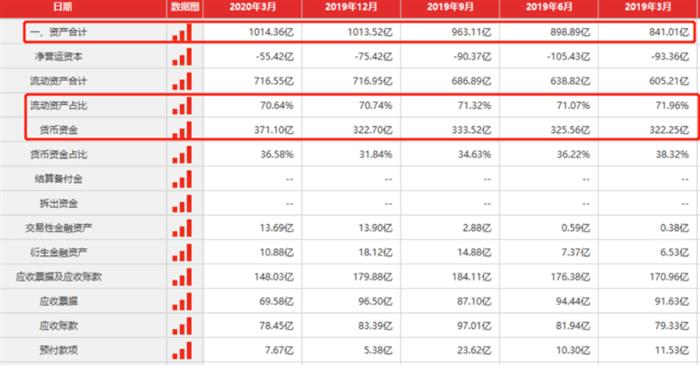 可以看到,宁德时代在今年一季度末账面资产有近1014.36亿元,流动资产的占比也达到70.64%,但其货币资金仅有371.1亿元,应收票据及应收账款虽数额不小,却不是能立即变现的资产。