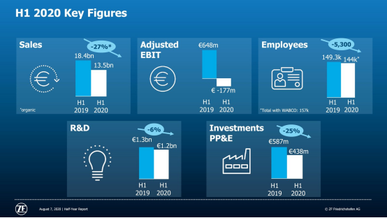 8月7日,采埃孚股份有限公司公布了其2020上半年财报。主要财务数据如下: