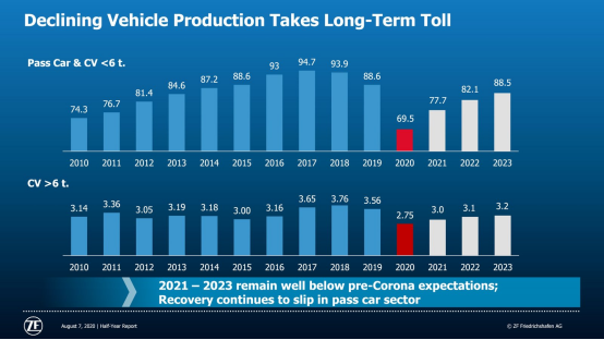 总体而言,全球经济形势依旧严峻。采埃孚预计在未来三年内市场无法恢复到2019年的水平。