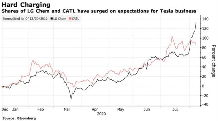 Research发布的数据,今年以来,汽车制造业对动力电池的需求首次出现下滑,但LG化学在上半年销量增涨84%,与宁德时代形成正面竞争,这与欧洲和中国推动电动车的普及有直接联系。根据中国乘用车市场信息联席会发布的销量数据显示,今年上半年,特斯拉Model