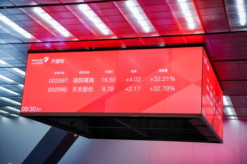 9月3日,奇瑞集团又一孵化企业加入“上市阵容”。瑞鹄汽车模具股份有限公司成功在深圳证券交易所中小板挂牌上市,股票简称:瑞鹄模具,股票代码:002997。该公司本次共发行 4,590 万股,每股发行价格为人民币12.48元,开盘后不久,即以17.97元/股的价格涨停,涨幅43.99%。