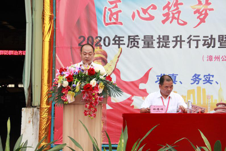 七月的天,骄阳似火,炙热的阳光传递着夏天的温度。七月的正兴,机台轰鸣,辛劳的汗水映衬出生产的火热。生产再忙,品质不忘。为深入贯彻集团“质量月”管理要求,进一步增强公司全体员工的质量意识,营造全员参与质量管理的氛围,保质保量完成旺季生产任务。漳州公司于2020年7月15日上午隆重举办以“匠心筑梦–品质正兴”为主题的“漳州公司2020年质量提升行动暨全员质量动员大会”。大会由办公室主任林德顺主持,漳州公司全体员工及各级领导共计一千多人参与此次动员大会。