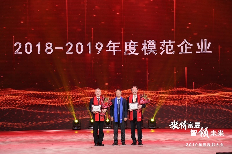公司对获得荣誉称号的先进集体和优秀个人进行了隆重表彰,王玉明副董事长与公司经管会成员为模范企业、劳动模范、模范团队、技术创新奖、专利奖、模范班组、优秀员工进行颁奖。