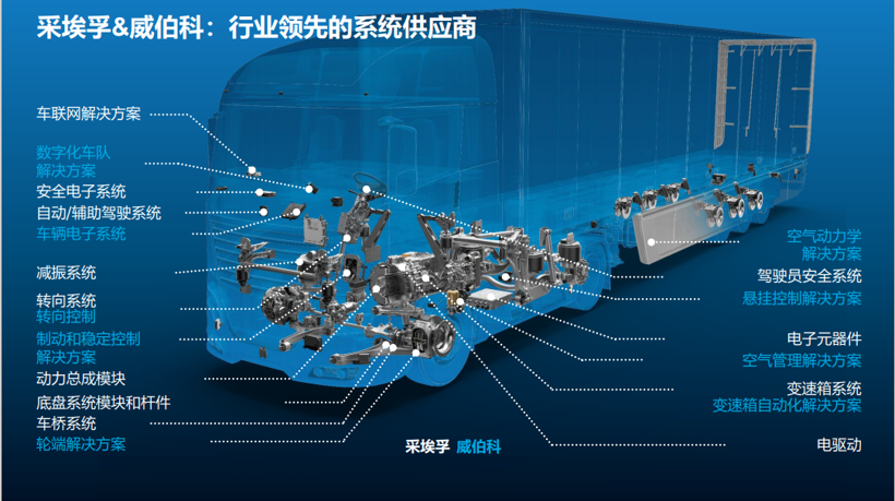 在收购威伯科之后的几个月时间里,双方融合了各自系统能力的新研发项目,并且取得了一定的成果,并于日前发布了四项智能解决方案。商用车技术事业部负责人Andreas