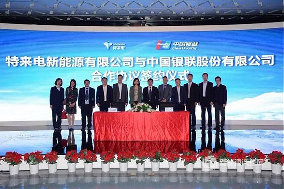 2018年5月18日,中国银联与青岛特来电新能源有限公司签署业务合作协议,双方将在业务合作、营销推广、科技创新等层面发挥各自优势,在电动汽车充电领域开展移动支付创新业务的深度合作。