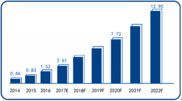 2014-2022年中国碳纳米管导电浆料产值分析及预测(亿元)