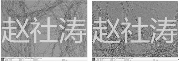 经多年研发,赵社涛最近成功突破了碳纳米管导电剂的新世代生产技术,进一步大大提高了现有小管径碳纳米管导电剂的性能。新工艺所制造的碳纳米管集三大优点于一身:1、是陈列式的碳纳米管,蓬松易分散;2、碳纳米管的层数在2-4层,平均3层,是薄壁的碳纳米管;3、碳纳米管的管径在3-8nm,平均4.8nm,是小管径的碳纳米管。