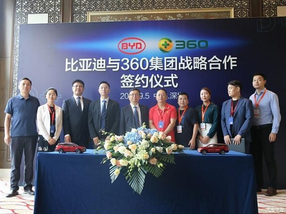 9月5日,在比亚迪全球开发者大会上,比亚迪宣布和360达成战略合作,双方将在车联网、汽车信息安全解决方案、移动互联、IOT、大数据及AI等领域整合相关资源。随后,比亚迪董事长王传福与360董事长周鸿祎针对汽车安全问题进行交流。