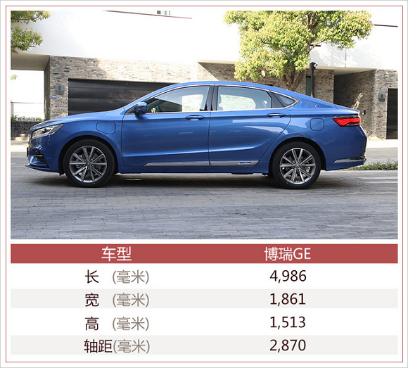 博瑞GE侧面造型修长,整体与博瑞基本相同,溜背式的设计则更加符合轿跑车型的特质。新车长/宽/高分别为4,986*1,861*1,513毫米,轴距2,870为毫米。此外,大尺寸多辐轮圈造型精美,且辅以纹理点缀。而车身左侧翼子板处还配备了充电接口。