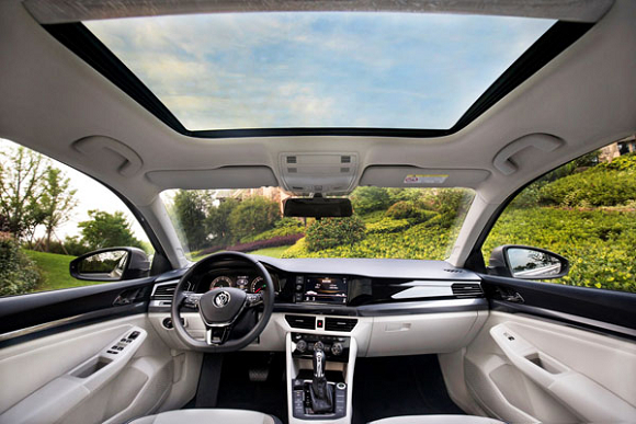 此外,全新一代宝来采用了与奥迪A4L同款天窗,畅游在茫茫竹海中,透过超大天窗将安吉的碧水蓝天尽收眼底;而当行驶在狭长的隧道中,反射式氛围灯打造出了车内温馨舒适的氛围。