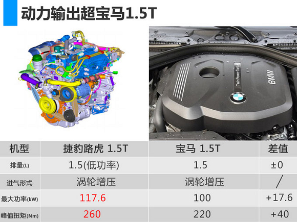 目前豪华品牌紧凑型及中型产品已经搭载了小排量发动机,宝马3系搭载三缸1.5T,奔驰C级搭载四缸1.6T,未来捷豹路虎产品也将搭载三缸1.5T发动机。与宝马三缸1.5T发动机相比,奇瑞捷豹路虎三缸1.5T发动机动力输出方面占据优势。