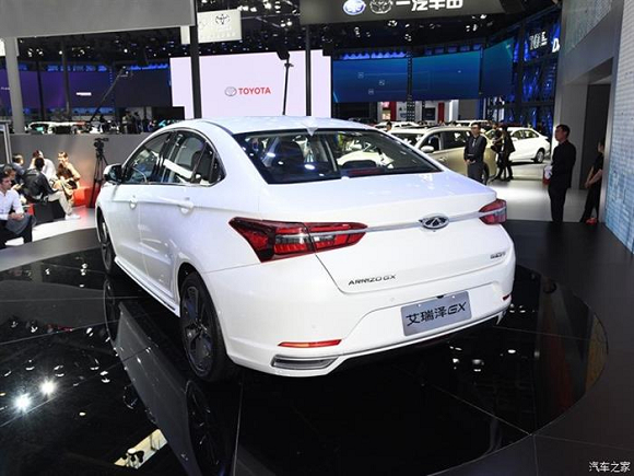 车身侧面,一条笔直的腰线从前轮眉一直贯穿至尾灯处,与隆起的轮眉线条以及车门下方硬朗的折线相结合,在车身表面塑造出了丰富的视觉效果。车身尾部,艾瑞泽GX采用了较为简单的设计,一根镀铬饰条贯穿左右两侧尾灯组,一定程度上拉宽了该车的视觉效果。同时梯形的牌照架区域也适当增强了尾部层次感。此外,该车还采用了双边共两出的排气装饰。