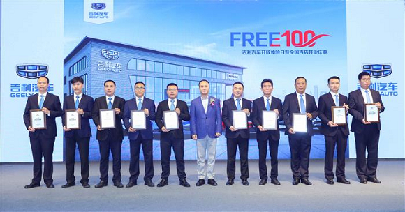 100”吉利汽车开放体验暨全国百店开业庆典在江西举行。在盛典上,吉利控股销售公司副总经理、吉利品牌销售公司常务副总经理宋军为经销商代表颁发授权牌匾。