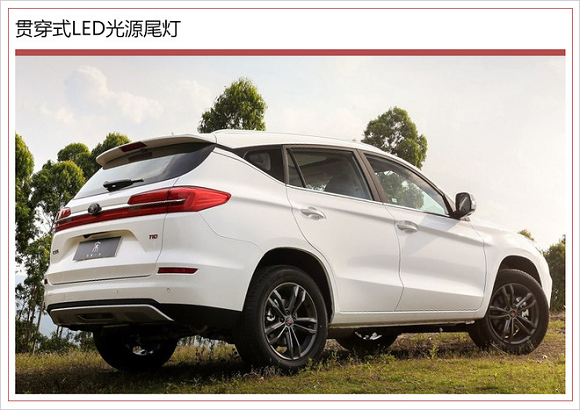 新车侧面上下两条腰线的设计,使得该车立体感十足。尾部造型棱角分明,尾箱中间凸起的棱线配合全新设计的贯穿式LED尾灯,提升该车运动气息;这款SUV下包围造型较为简洁,牌照架上方线条的应用使得该车尾部肌肉感十足,配以底部银色护板,整体彰显运动范儿。