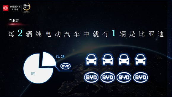 “在北京街头每两辆纯电动汽车,就有一辆是比亚迪。”