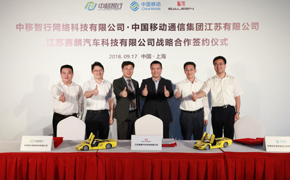 2018年9月17日下午,世界顶级汽车品牌赛麟汽车、中国移动旗下专业车联网公司中移智行网络科技有限公司以及中国移动通信集团江苏有限公司在上海外滩罗斯福公馆举行战略合作签约仪式。中移智行网络科技有限公司总经理黄刚,中国移动通信集团江苏有限公司副总经理关懿珉,江苏赛麟汽车科技有限公司执行副总裁毛天华出席签约仪式并致辞。中移智行网络科技有限公司销售部总经理张为峰,中国移动通信集团江苏有限公司集团客户部副总经理童恩,以及江苏赛麟汽车科技有限公司CFO于福忠代表合作各方签约。双方将在车联网应用,智慧交通以及大数据等领域展开全面合作。