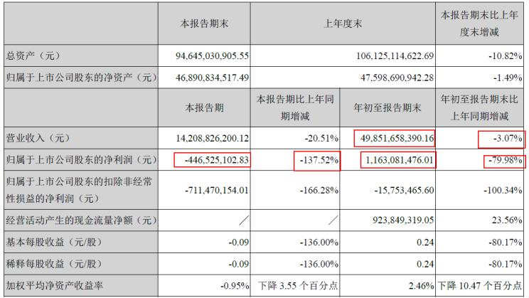同比降137.52% 长安第三季度亏4.46亿元
