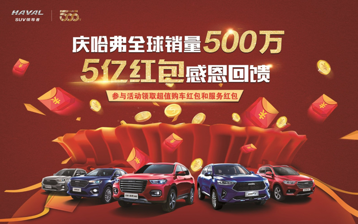 哈弗正式上线“庆哈弗全球销量500万,5亿红包感恩回馈”活动