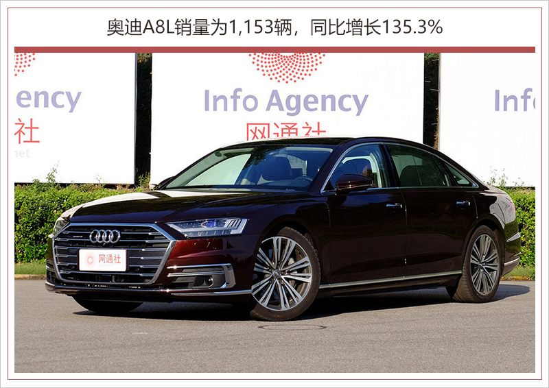 进口车方面,全新奥迪A5销量为1,354辆,同比增长18%;奥迪Q7销量为1,721辆,同比增长26.3%;奥迪A8L销量为1,153辆,同比增长135.3%。