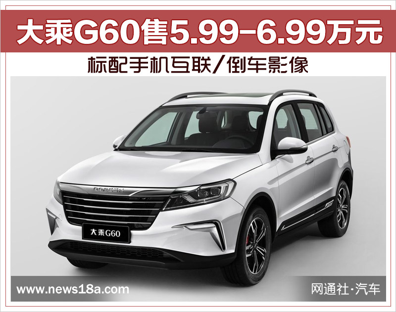 大乘G60售5.99-6.99万元 标配手机互联/倒车影像
