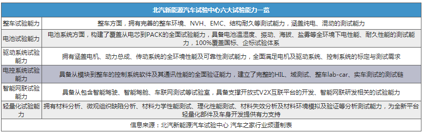 据北汽新能源汽车实验室相关负责人介绍称,北汽新能源试验中心拥有400余台试验设备,能够覆盖全车164类零部件共计4774项验证项目、15大子系统407项系统级匹配验证试验、21个技术领域378项整车验证等,确保北汽新能源旗下整车产品能够满足10年24万公里的使用寿命。