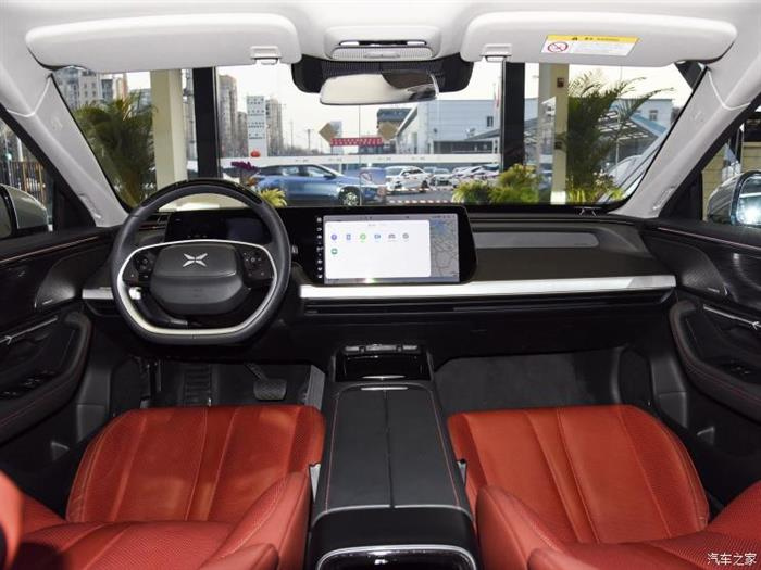 小鹏汽车P7的中控台采用了相对平直的线条设计,并将空调出风口融入其中。中控屏幕看起来比较低矮,贯穿式的一体屏由一块10.25英寸的高清全液晶智能仪表与14.97英寸悬浮触控屏组合而成。内饰中的按键、方向盘和音响扬声器采用2.5D曲面设计。此外,该车配备的XPILOT