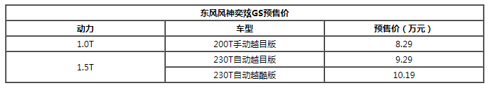动力方面,风神奕炫GS提供1.5T和1.0T两款发动机。其中,1.0TD涡轮增压缸内直喷发动机,百公里油耗仅5.8L;1.5T涡轮增压发动机,与之匹配的是来自德国格特拉克的6DCT湿式双离合自动变速器。