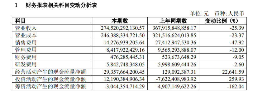 财务报表相关科目变动分析表显示,上汽集团上半年研发费用支出为58.43亿元,占营业收入的2.13%,比上年同期减少2.6%。