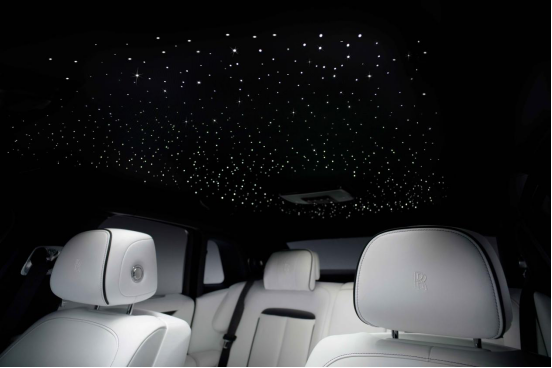 劳斯莱斯汽车Bespoke高级定制部门为全新古思特缔造了专属的星光仪表面板:这一世界首创的Bespoke高级定制设计与劳斯莱斯汽车的星空顶巧妙呼应。劳斯莱斯的星空顶设计早已与“欢庆女神”、“帕特农神庙进气格栅”、“双R”标志共同成为劳斯莱斯汽车标志性设计。
