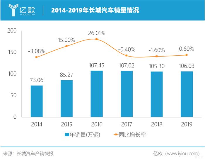 作为自主品牌排头兵,长城汽车在车市遇冷的2019年实现了超过106万辆的产销量,同比增长0.69%。过去的成绩不值得骄傲,在魏建军看来,这很大程度上源于长城汽车赶上了中国汽车市场的黄金时代。