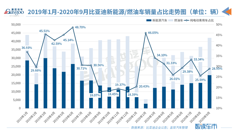 具体来看,近年来销量一直逆势增长的燃油车板块,在本月同比下滑17.55%,共售出22,302辆燃油车;至此,今年前九个月比亚迪累计销售158,034辆燃油车,较去年同期增长了10.38%。
