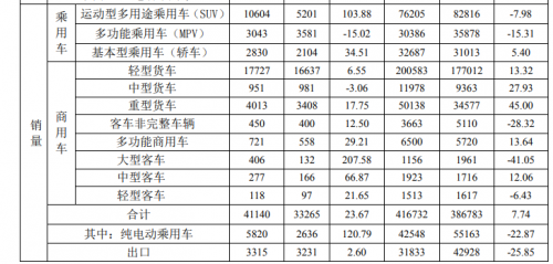 乘用车板块中,SUV和轿车两大细分市场实现增长。其中,SUV业务11月销售新车1.06万辆,同比增长103.88%,去年同期为5201辆;前11月累计销量为7.62万辆,同比下滑7.98%。