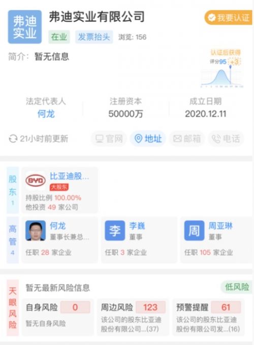 为此联系到比亚迪方面,但对方未对此次新公司成立进行详细解读。