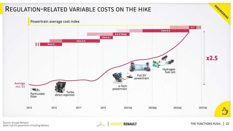 更为重要的是,雷诺集团将坚持严格的成本控制,包括固定费用减少,提前实现成本控制计划,于2023年将总成本控制提升到到25亿欧元水平,2025年目标为30亿欧元(包括固定成本变动)。可变成本到2023年每辆车改进600欧元。到2025年,将投资(研发和资本性支出)从占收入10%左右降至8%以下。所有这些努力将帮助增强雷诺集团的抗风险能力,并在2023年将其盈亏平衡点降低30%。