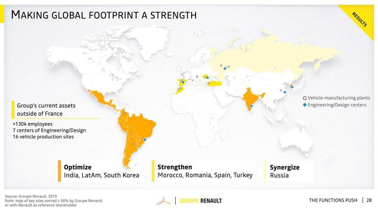 雷诺集团的国际业务将转向高利润业务,特别是在拉美、印度和韩国市场,同时利用在西班牙、摩洛哥、罗马尼亚、土耳其市场的竞争力,并与俄罗斯市场创造更多的协同效应。
