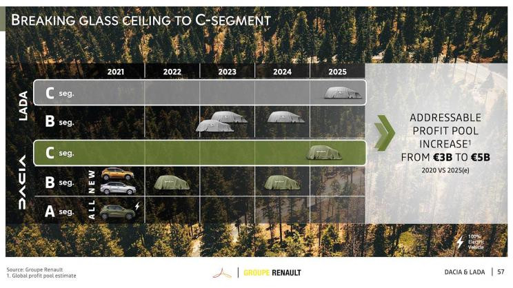 达契亚(Dacia)/拉达(Lada)品牌中,针对达契亚将继续保持其潮范,而拉达也将延续其粗犷、硬朗的风格,在为预算有限的消费者提供价格实惠、技术成熟的产品的同时,打破中型车市场发展的限制。