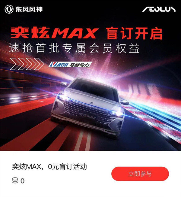 5月21日,奕炫MAX开启0元盲订活动。 [详细]