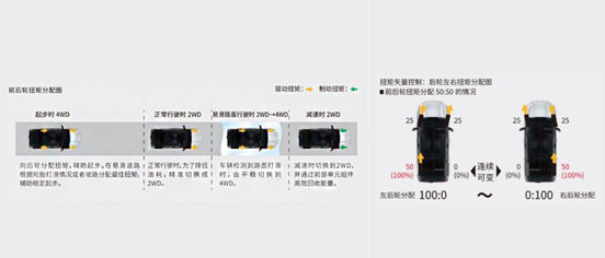 其中,动态扭矩控制系统能够以50:50的比例来分配前后桥动力,经常会行驶在铺装不是很好的一般复杂路面,而且雨季分明、冬天又经常会下雪的地区,这套动态扭矩控制系统可以保证行驶的操控性、稳定性。另一款四驱系统:动态扭矩矢量控制系统的核心优势就在于可以根据不同路况,控制前、后以及左、右车轮的扭矩分配,大幅提升了车辆转弯时的线性行驶性能和恶劣路段的通过性能。此外,为RAV4荣放双擎版提供的电子四驱(E-Four)可实现前后轮扭矩在100:0~20:80之间精准分配,即使是在湿滑路面,也能保证迅猛的起步与卓越的操控。