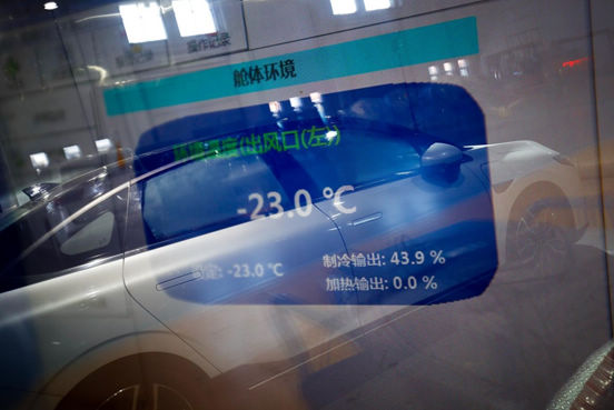 低温启动测试,国标的要求是在-18℃的温度下进行,而此次小鹏汽车为了更加真实地模拟冬季的极寒条件,实验先对小鹏P5进行长达8小时的专业实验舱极寒“浸泡”,直到全车内外温度降到-23℃。