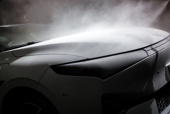 经过专业技术人员的上霜之后,小鹏P5整个车身及风挡玻璃已经结满霜花。